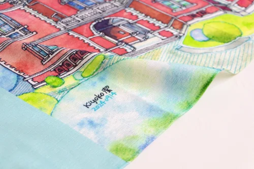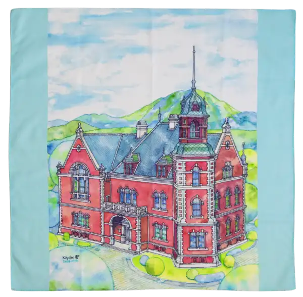 クラーク記念館を山口潔子さんの色鮮やかなイラストで表した風呂敷です。